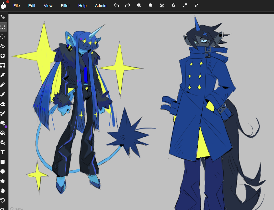 Tried Livejournal for a bit but swinging back here again. Some doodles hanging w/ buds in Magma. I think the hardest thing is finding a online storage space to host images. Catbox seems fine for now.
